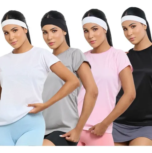 Kit 4 Blusas Feminina Fitness Dry Fit Camiseta Academia Moda